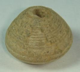 | Description / विवरण | Perforated terracotta bead, betel nut in shape, shallow depression at the base, close and mild striation marks all over. |