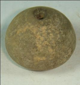| Description / विवरण | Perforated terracotta bead, betel nut shaped, flat base, surface is smooth. Clay incrustation all over. |