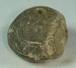 | Description / विवरण | Perforated terracotta bead, betel nut in shape, having deep depression at the base, body part is broken. |
