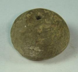 | Description / विवरण | Perforated terracotta bead, betel nut in shape, having striation marks all over, body portion is slightly broken, ill fired which shows from the core. |