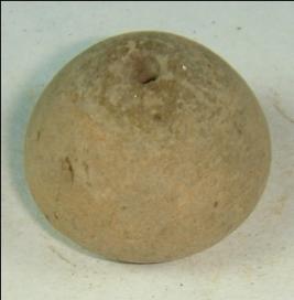 | Description / विवरण | Perforated terracotta bead, betel nut in shape, depression at base, surface is smooth. |