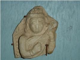 | Description / विवरण | Fragment of a male musician depicting the upper part of the body. The rest part of the body is missing. He is playing a Veena and having an elaborate hair style and wearing wrist band. |