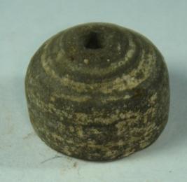 | Description / विवरण | Perforated terracotta bead, betel nut in shape, having rough surface. |