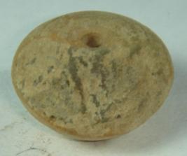 | Description / विवरण | Perforated terracotta bead, betel nut in shape, half broken, ill fired which shows from the core. |