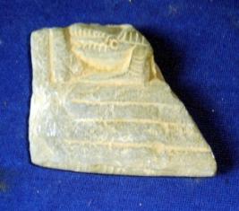| Description / विवरण | Fragment of a stone depicting some incised lines designs in niche while the other surface is rough. |