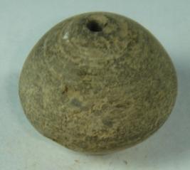| Description / विवरण | Perforated terracotta bead, having pot like shape with shallow depression top and pointed top mild corinated lines all over. |