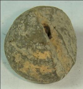 | Description / विवरण | Perforated terracotta bead, pot shaped depression at base, surface is smooth, but broken in most part, clay incrustation all over. |