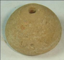 | Description / विवरण | Perforated terracotta bead, betel nut shape, flat base, smooth surface, clay incrustation all over. |
