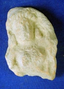 | Description / विवरण | Fragment of terracotta female figurine in low relief, facial features are not clear. Figurine is adorned with headgear, earring and necklace. Her bust is prominent and body below bust is broken. |