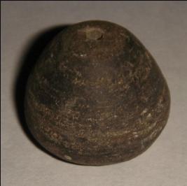| Description / विवरण | Perforated terracotta bead, betel nut in shape, depression at the base, surface is smooth. |