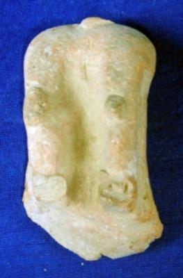 | Description / विवरण | Fragment of a terracotta human figurine in standing position in a concave shape in low relief. The body below waist to anklets are visible. The left feet is partially seen while the right feet is totally missing. |