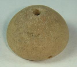| Description / विवरण | Perforated terracotta bead, betel nut in shape, slight depression at the base. |