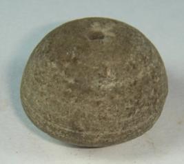 | Description / विवरण | Pot shaped, perforated terracotta bead with depression at the base. There are striation marks all over and the surface is corroded. |