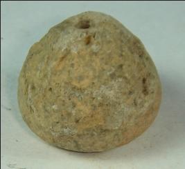 | Description / विवरण | Perforated terracotta bead, betel nut shape, surface is peeling off. |