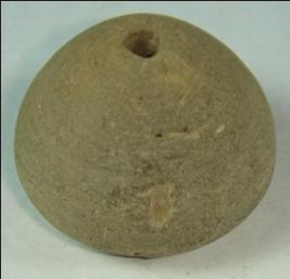 | Description / विवरण | Perforated terracotta bead, betel nut in shape, the base has slight depression. |