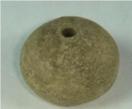 | Description / विवरण | Perforated terracotta bead, betel nut in shape, the base has slight depression. |