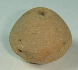 | Description / विवरण | Perforated terracotta bead, bi-convex in shape. One side is longer than the other. Part of the middle portion is corroded. |