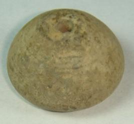| Description / विवरण | Perforated terracotta bead, betel nut in shape. The tip is slightly flat and the base has a slight depression at the middle. |