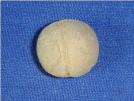 | Description / विवरण | Tiny, plain terracotta ball, ill fired, having incised lines all over. |