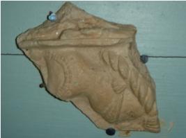 | Description / विवरण | Fragment of a sculpture, depicting the torso of male. Two strands of pearl necklace and girdle are prominent. At the bottom is a diagonal ridged design. On his left side a hand wearing bangle and holding a lotus flower is visible. |
