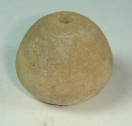 | Description / विवरण | Plain, perforated terracotta bead, betel nut shape. Centre of the base has slight depression. |