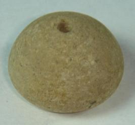 | Description / विवरण | Plain, perforated terracotta bead, betel nut shape. It is well made with a slight depression at the centre of the base. |