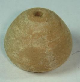 | Description / विवरण | Plain, perforated terracotta bead, betel nut in shape. |