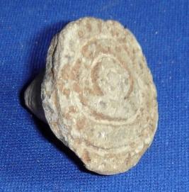 | Description / विवरण | Terracotta Seal, conical at top and flat circular at base, having concentric circles and in between, incised holes in row can be seen. Some part of design has been broken. |