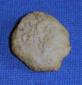 | Description / विवरण | Terracotta Seal, irregular in shape, with plain reverse and obverse containing embossed probably Ujjain Symbol-two lines intersecting with circles at each end. Some of design is mutilated. |