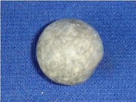 | Description / विवरण | Tiny stone sling ball, spherical in shape with plain surface. |