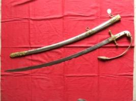 | Description / विवरण | it is a sword tega halavi made of stainless steel and little bit bend very sharpness. the handle well decorated shah Jahani work style. lower part of hilt is ankle guard with pommel. |