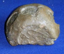 | Description / विवरण | Ill fired, terracotta Seal, broken, circular in shape, 3 molds in row are seen on the body having circular embossed design of flower out of three, one had been half broken. Fourth one mold, largest, half broken, having similar design at the top. some symbolic letters are available above the object. |