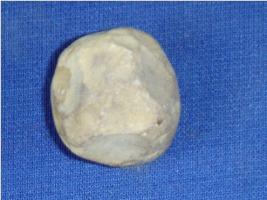 | Description / विवरण | Small stone sling ball, crudely finished and surface with flaking marks, irregular in shape. |