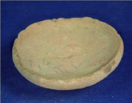 | Description / विवरण | Coarse, ill fired terracotta tiny dish on footed stand, circular body with upraised rim. The edges are broken and earthly incrustation on it. Sparse striation marks in the inner surface. |