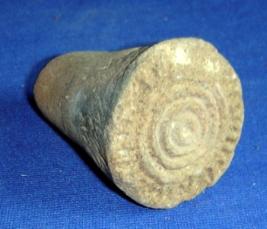 | Description / विवरण | Ill fired, terracotta Stamp, Conical shape having flat circular base, decorated with concentric circles. |
