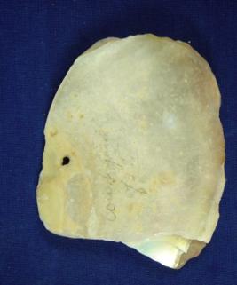 | Description / विवरण | Fragment of shell, discoloured due to weather effect. |