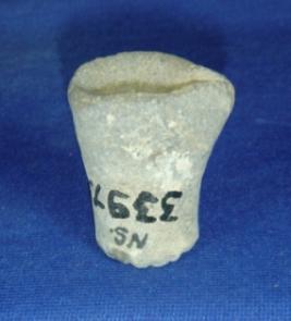 | Description / विवरण | Terracotta coarse vessel - tiny lamp in cylindrical shape with a projected side, meant for the wick and circular hollow base with oblique cut design. |