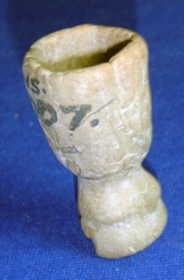 | Description / विवरण | Terracotta tiny goblet, having round base, with shallow depression, a carinated line near the base, body is without any decoration and rim is featureless. It is handmade. |