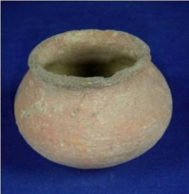 | Description / विवरण | Semi-fine ill fired tiny terracotta Miniature pot with circular-flat base, round body, short and broad neck, wide open mouth with slightly raised rim. It is a red slipped pottery. |
