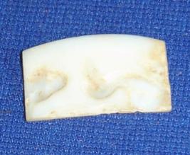 | Description / विवरण | Fragment of shell bangle, slightly rectangular in shape, having smooth surface at one side, while other surface has a designed bird made with incised lines. |
