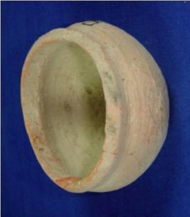 | Description / विवरण | Coarse, well fired tiny terracotta Miniature pot with flat circular base, round body and slightly inverted rim with concavity below. Clay incrustation is visible in its interior surface. |