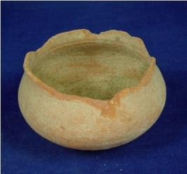 | Description / विवरण | Coarse terracotta vessel - a Miniature pot, with broad mouth, round body and oval base. The rim is broken. |
