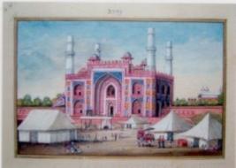 | Description / विवरण | It is a tomb of Mohd Gaus of Gwalior, The tomb is very beautiful. A white palace shown behind it. Some people are moving towards tomb, used colors of tomb are red stone and white. |