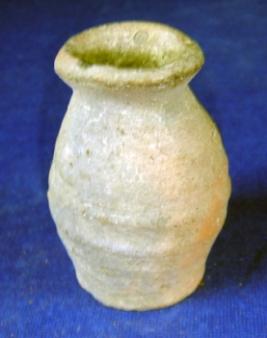 | Description / विवरण | Small, ill fired, terracotta jar, having flat base. It has string marks, bulbous body having corrugated circles, low neck and thick averted rim. |
