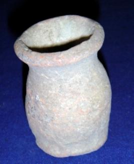 | Description / विवरण | Terracotta tiny jar, coarse, having broad mouth, with averted rim, circular shaped body and flat, circular base. Mouth of jar is larger as compare to base. |