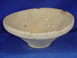 | Description / विवरण | Terracotta bowl with broad mouth narrow flat circular base, and thick rim both the surfaces are smooth. It is without any decoration. It was probably used as an utensil or hanging. |