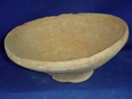 | Description / विवरण | Terracotta bowl with broad mouth, thick rim, and flat circular base, without any decoration having wheel marks on outer surface. It was probably used as a utensil and hanging. |