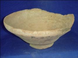| Description / विवरण | Plain terracotta bowl with a broad mouth, thick rim and narrow base. The wheel marks are visible at both sides, the inner side is slightly smoother then the outer, it was probably used as a utensil. |
