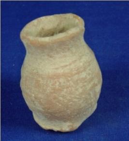 | Description / विवरण | Coarse terracotta tiny jar of broad mouth with averted rim, short neck bulbous body and circular flat base. The jar has earthly incrustation. |