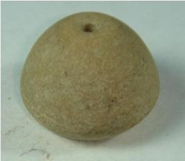 | Description / विवरण | Perforated terracotta bead, betel nut in shape with depression at the base having striation marks all over body. |